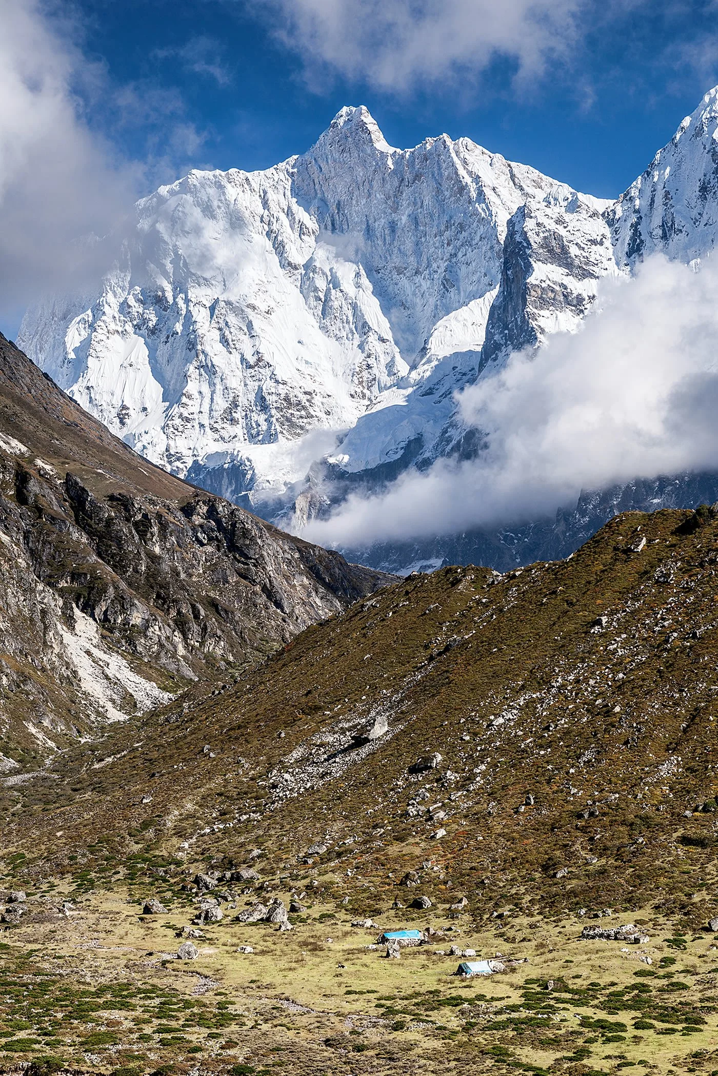 30 Oct: Trek to Khambachen (4,150m / 13,615 feet) | Official entry into the high-alpine zone. This is the day the landscape shifts from "lush" to "epic," but it’s also the day the physical challenge increases significantly due to the altitude. This is the "big reveal" day. As you round the bends in the valley, the north face of Mt. Jannu (7,711m)—one of the most formidable and beautiful peaks in the world—comes into full view. Its sheer granite walls are staggering. 10–12 km / 6–7.5 miles, 5 to 6 hours.